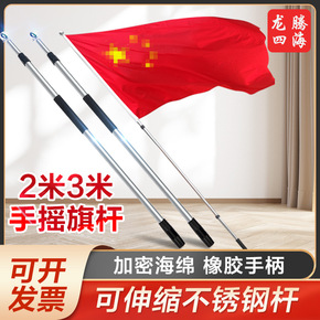 旗加杆 加厚3米手摇伸缩旗杆3号国旗2米不锈钢五星...