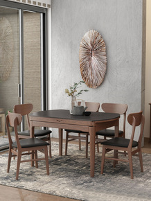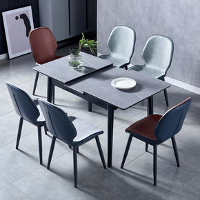 材质:实木 货号:tb-633320020052 颜色:岩板伸缩桌【保利亚灰】+4沙发椅、岩...