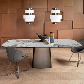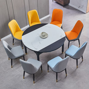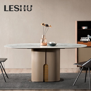 意式极简风岩板餐桌椅组合高端家用轻奢椭圆形轻奢马鞍...