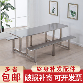 不锈钢食堂餐桌椅组合8人4人公司工厂饭堂长方形学生...