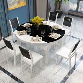 多功能餐桌椅组合现代简约长方形餐桌布艺餐椅可伸缩小...