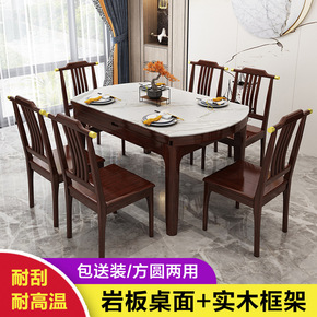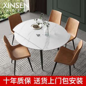 北欧大理石圆形餐桌椅组合现代简约岩板圆餐桌家用实木...