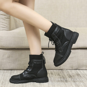 低帮马丁靴女2021秋冬季新款甜美中筒靴圆头粗跟时...