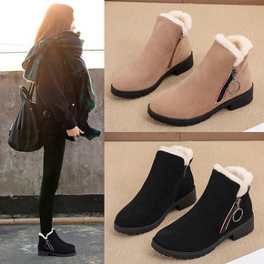 明星同款加绒短靴女 2019 秋冬磨砂绒面粗跟侧拉...
