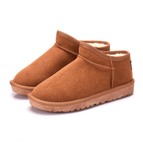 真皮雪地靴女短筒平底防滑棉鞋男大码韩版学生面包鞋一...