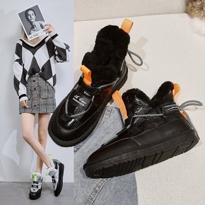 外贸大码雪地靴女2021新款短靴圆头系带网红黑色短...