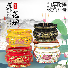 陶瓷香炉家用供奉插香室内供奉用品香炉真金唐彩莲花香...