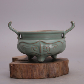 宋 汝窑青釉猫头鹰纹香炉 铁胎支钉烧景德镇摆件收藏...