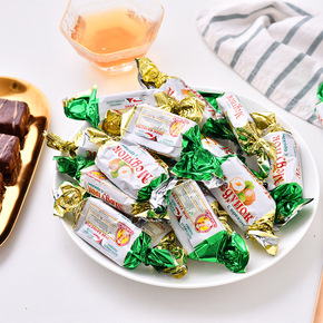俄罗斯扁桃仁紫皮糖红皮糖500g夹心巧克力零食下午...