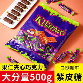俄罗斯风味国产巧克力夹心紫皮糖年货节喜糖果网红零食...