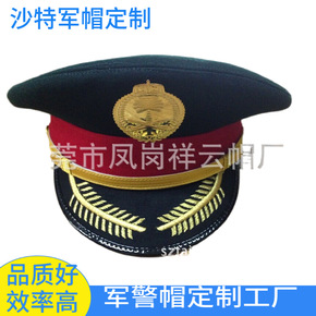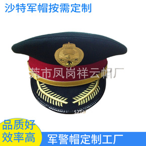 定制沙特军帽大盖帽非洲保安帽印度丝绣花军帽定做机师...