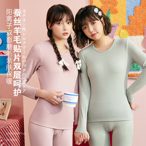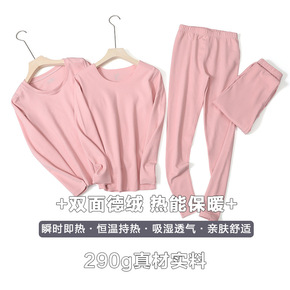 一件代发新款加厚加绒保暖内衣套装女圆领秋衣秋裤女套...