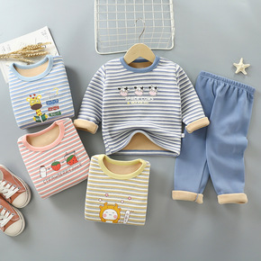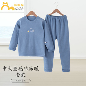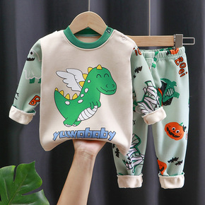 一件代发儿童保暖内衣套装男女童秋冬家居服加绒加厚宝...