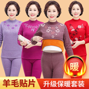 中老年人保暖内衣女加绒加厚冬季妈妈保暖衣套装女士秋...