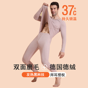 初棉男士德绒无痕保暖内衣套装发热上衣保暖衣双面加绒...