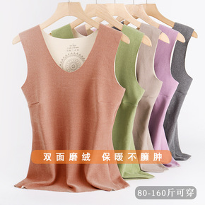 新款蚕丝贴片德绒保暖背心女秋冬打底无痕加绒保暖内衣...