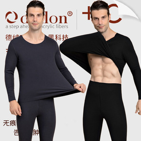 德绒秋衣秋裤双面无痕保暖套装男士圆领秋冬季保暖内衣...