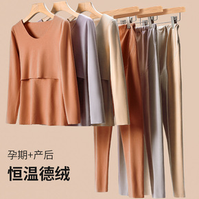孕妇秋衣裤套装加绒保暖内衣秋冬季喂奶月子服薄绒产后...