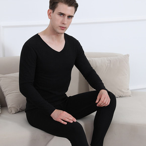 德绒恒温无痕速暖V领套装男秋冬季弹力大码修身秋衣秋...