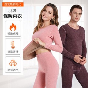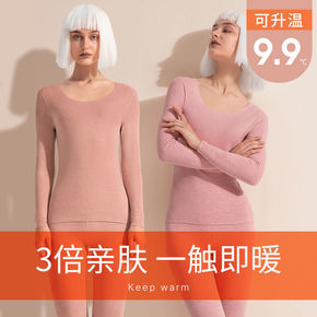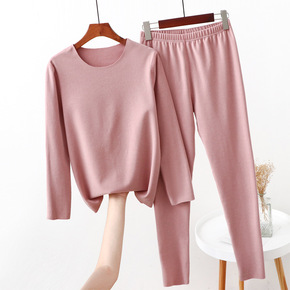 2021秋冬新款女士无痕德绒保暖套装圆领修身自发热...