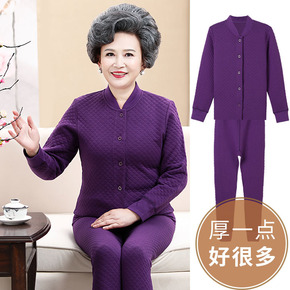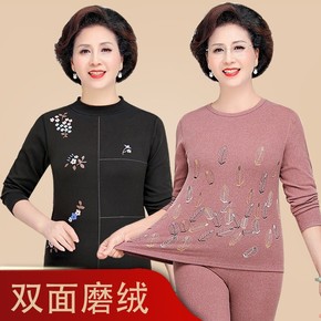 中老年人纯棉低圆领保暖内衣棉毛衫秋冬全棉妈妈套装婆...