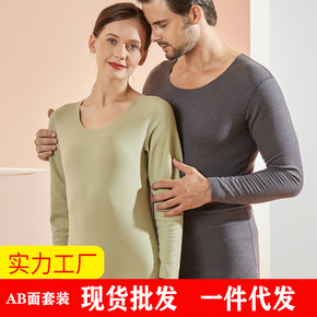AB面阳离子无痕秋衣秋裤情侣套装双色女打底衫男士德...