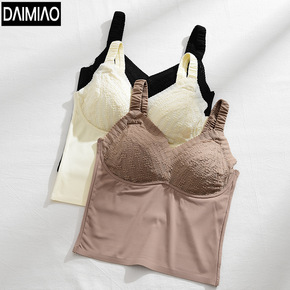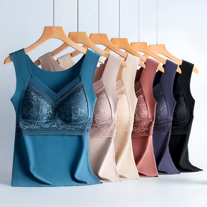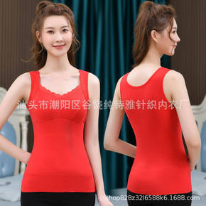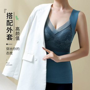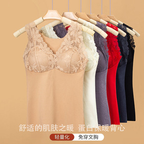 新款加厚加绒德绒蕾丝保暖背心女冬季打底带胸垫自发热...