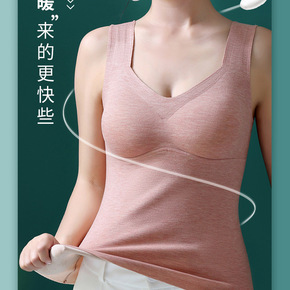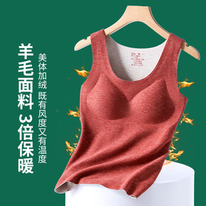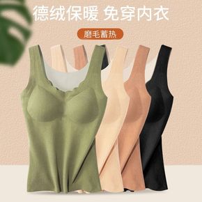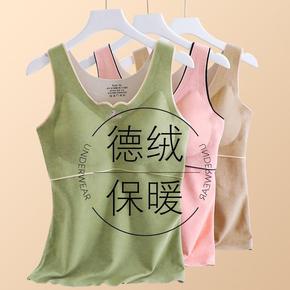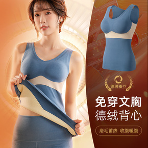 秋冬德绒保暖自热背心内衣女加厚加绒带胸垫无痕蚕丝羊...