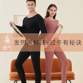 男士保暖内衣秋冬德绒自发热圆领修身套装加绒加厚秋衣...