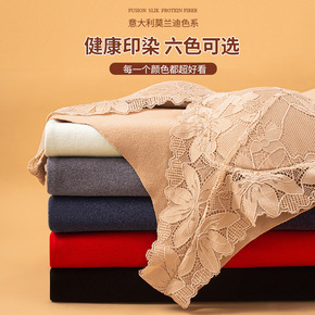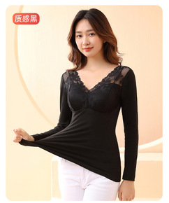 新款蕾丝德绒保暖衣女无痕磨毛一体固定杯打底衫加绒加...