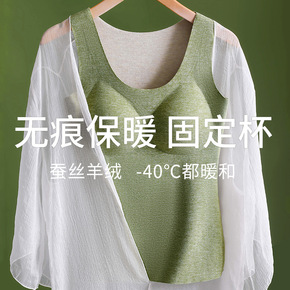 德绒保暖加绒文胸带胸垫保暖背心女蚕丝加热固定杯加绒...