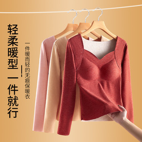 德绒保暖内衣女内穿发热秋衣带胸垫免穿文胸秋冬打底加...