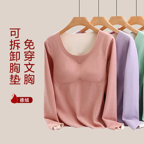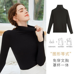 德绒无痕保暖内衣上衣薄款美肤带胸垫冬季高领打底衫女...