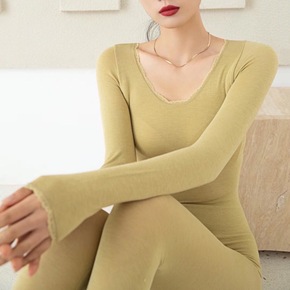 新款美雅碧女士无痕羽毛蛋白轻薄自发热套装花边圆领修...