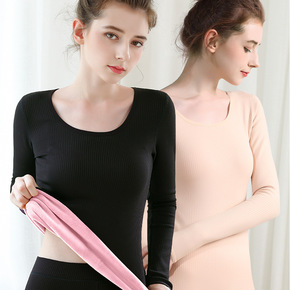 女士无痕保暖内衣套装自发热加绒加厚紧身圆领秋衣秋裤...