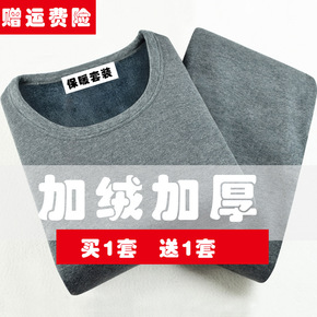 买一送一男保暖内衣套装加绒加厚冬纯色棉质大码线衣线...