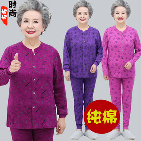 老年人秋装女长袖纯棉内衣套装奶奶装秋衣秋裤妈妈爸爸...