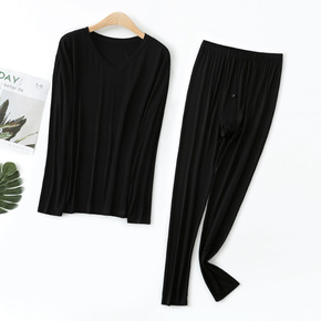 男士内衣套装超薄款莫代尔纯棉大码秋衣秋裤溥款冰丝加...