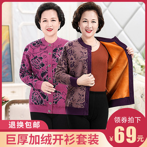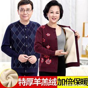 中老年人保暖内衣男加厚加绒套装女妈妈老人开衫大码加...