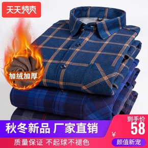 冬季新款加绒加厚内衣保暖衬衫男士长袖格子衬衣中老青...