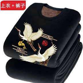 中老年保暖内衣男士套装加绒加厚超厚圆领加肥加大保暖...