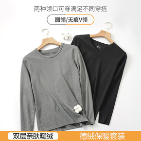 男士保暖内衣秋冬双色德绒磨毛套装情侣修身加绒加厚打...