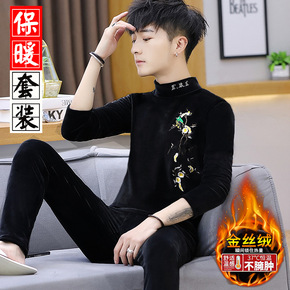 冬季男士保暖内衣金丝绒套装加厚加绒青年秋衣秋裤男打...
