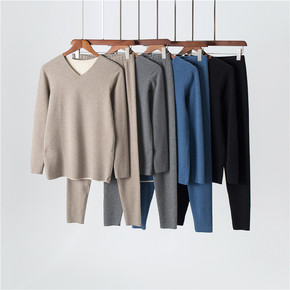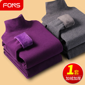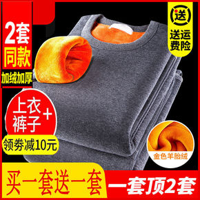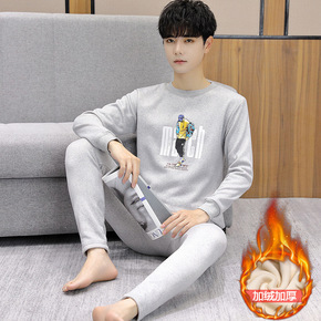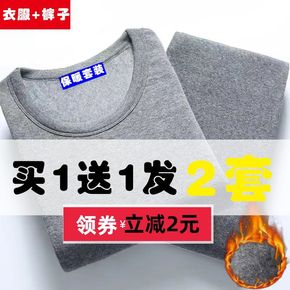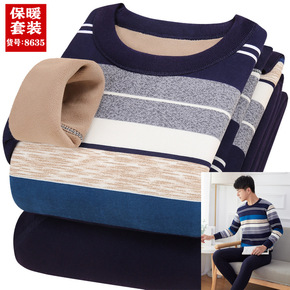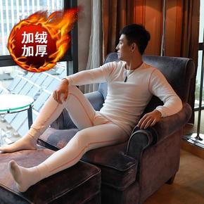 新款男士保暖内衣套装加绒加厚圆领青年修身冬季棉毛打...