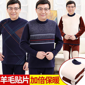 冬季高档中老年保暖内衣套装男士爸爸父亲保暖衣加绒加...