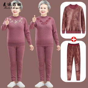 中老年人保暖内衣套装女奶奶秋冬装毛衣服妈妈加绒加厚...