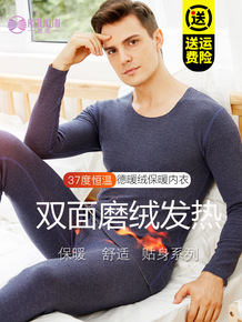 蚕丝保暖内衣男加绒加厚无痕德绒自发热秋衣防寒冬季内...