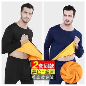 冬季男士金丝双面加绒加厚保暖内衣套装大码女秋衣秋裤...