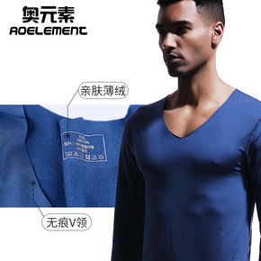 男士V领无痕防寒保暖内衣男套装加绒紧身薄款秋衣秋裤...