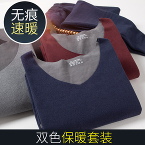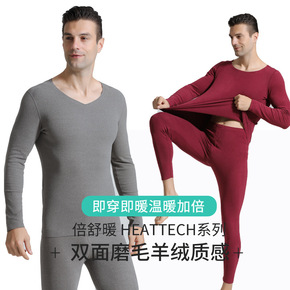 冬季德绒男士保暖内衣套装自发热无痕磨毛加绒加厚秋衣...